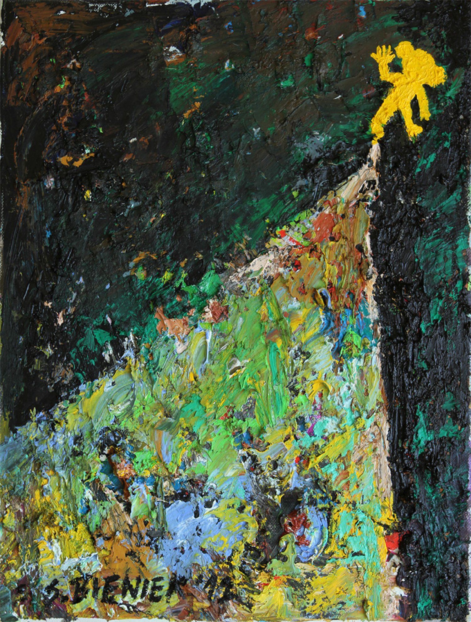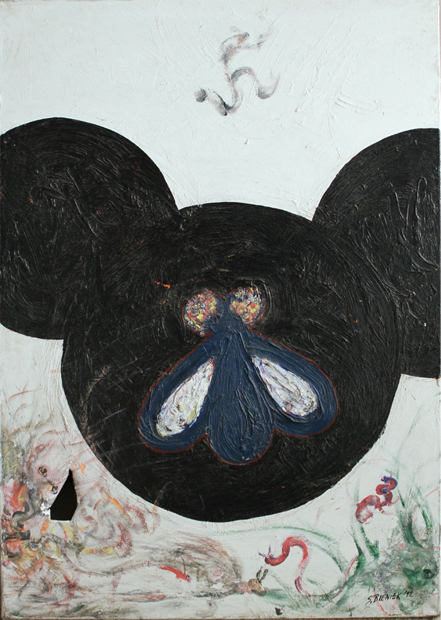 Some of the paintings were created accidentally or were found (ready mades). So the "Universal Bear" (No. 2) was originally a color palette until Sebastian Bieniek "discovered" a bear in it and gave it the name "Universal Bear". The situation is similar with "The Sad Bear". This work was also "found". It was originally a plate on which the artist put his tools, until he discovered a "bear" in it, which he named "The Sad Bear" (No. 5).