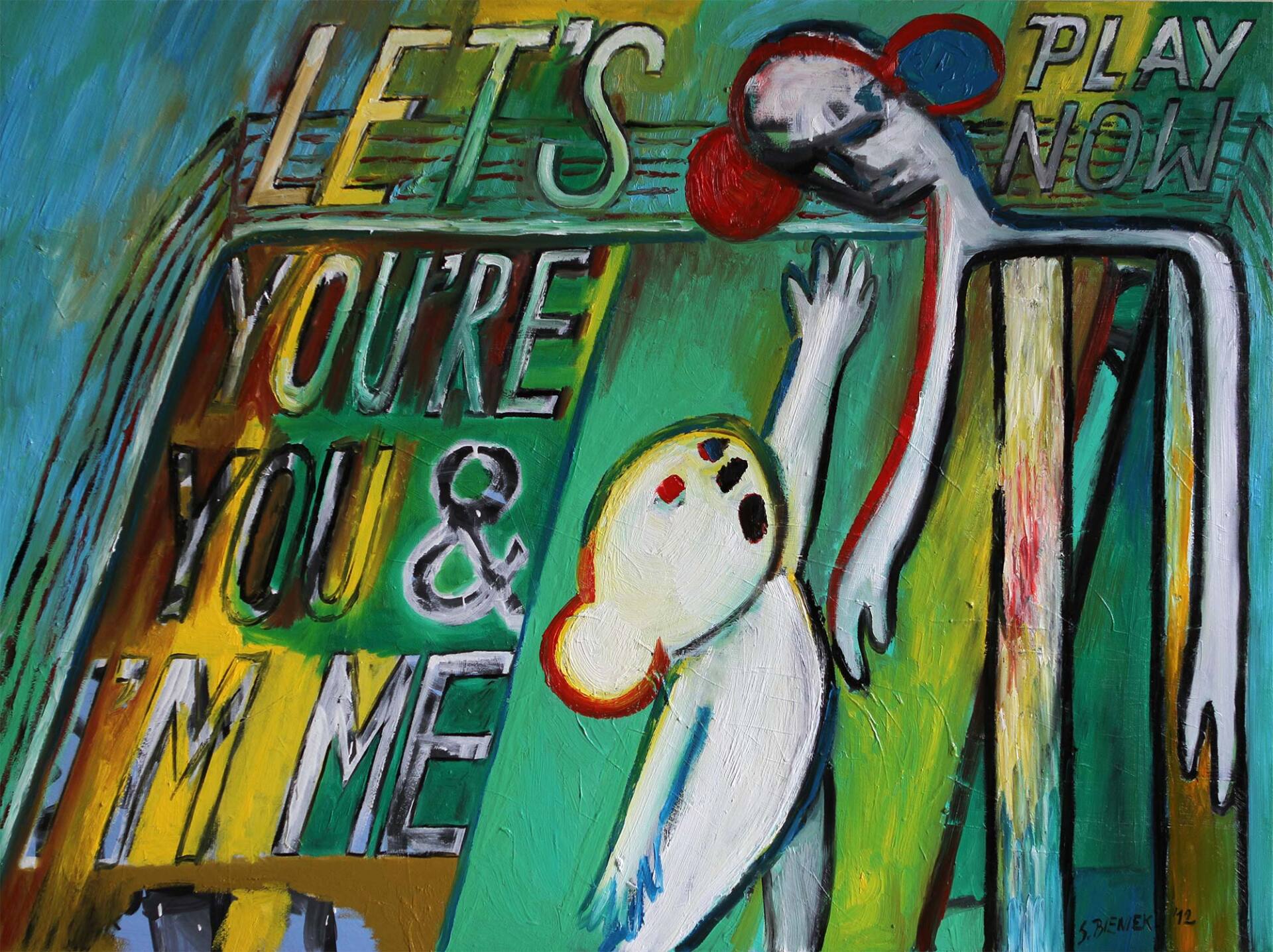 "Let's play now you're you & I'm me" by Sebastian Bieniek, 120x90 cm. Oil on canvas, 2012.