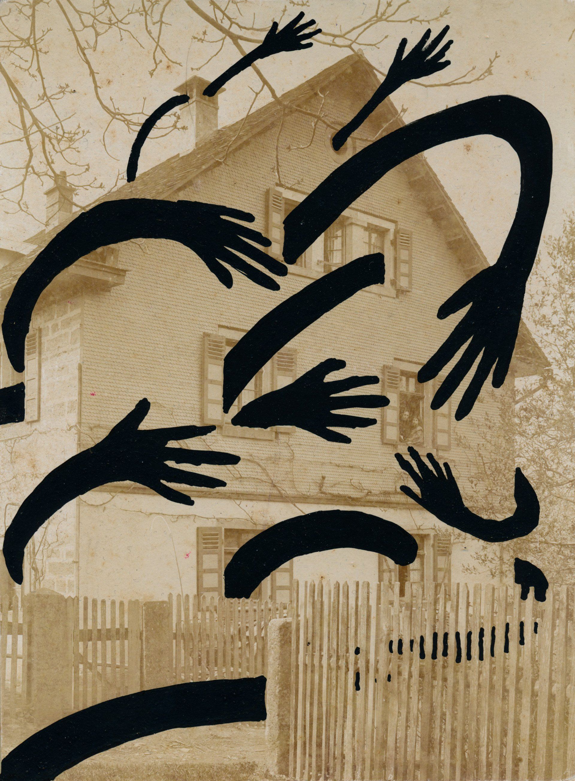 The characteristic part of his "Bieniekhand" style are white or black hands which surrender, cover or embrace usually a body but also houses and other objects.